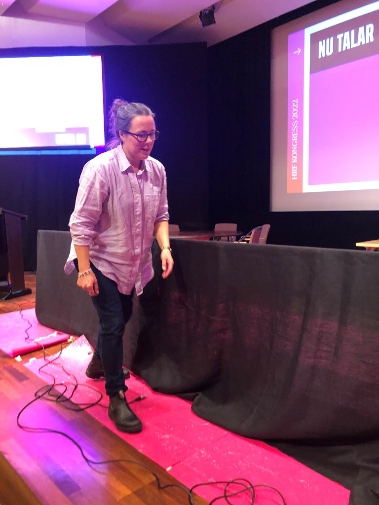 Uppdraget var att dekorera scenen och foajén inför HRF:s kongress 2022. Detta skedde i gott samarbete med företaget In good company som stod för projektledning och utformning av digitalt och visuellt formspråk.